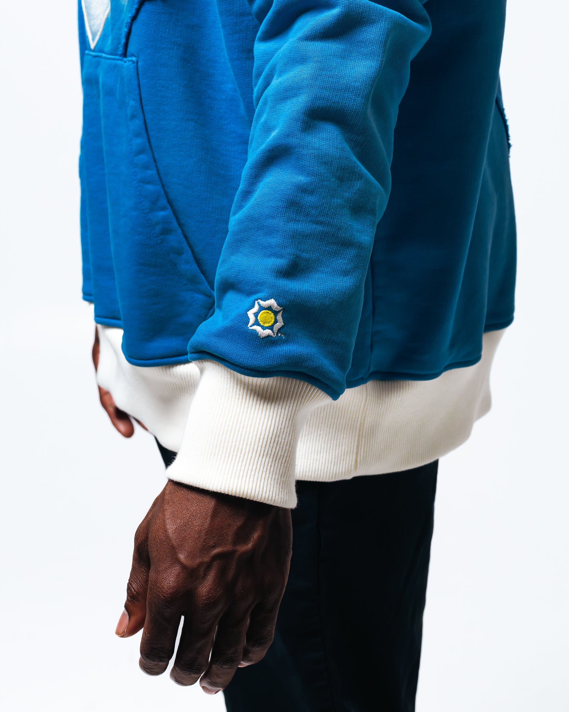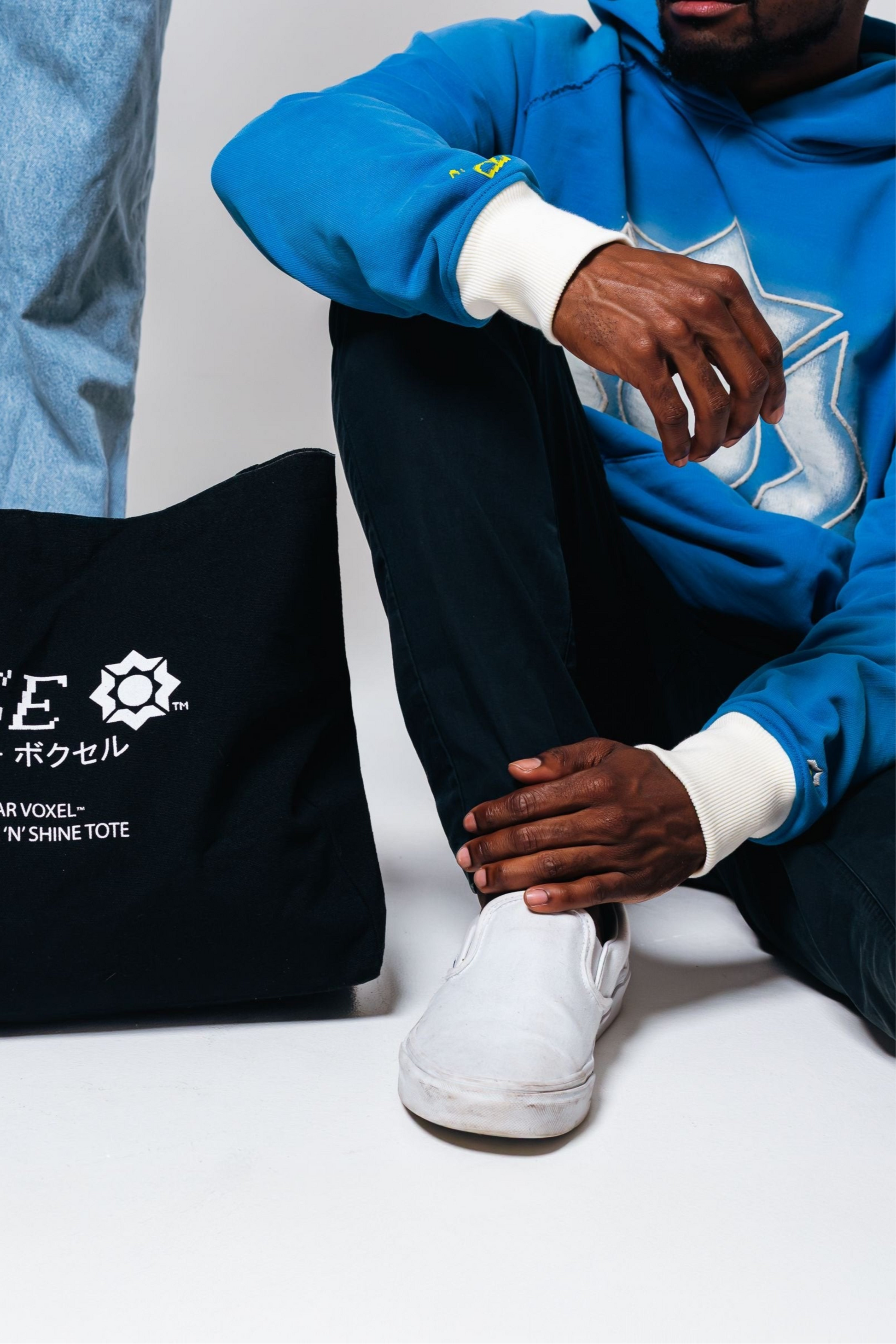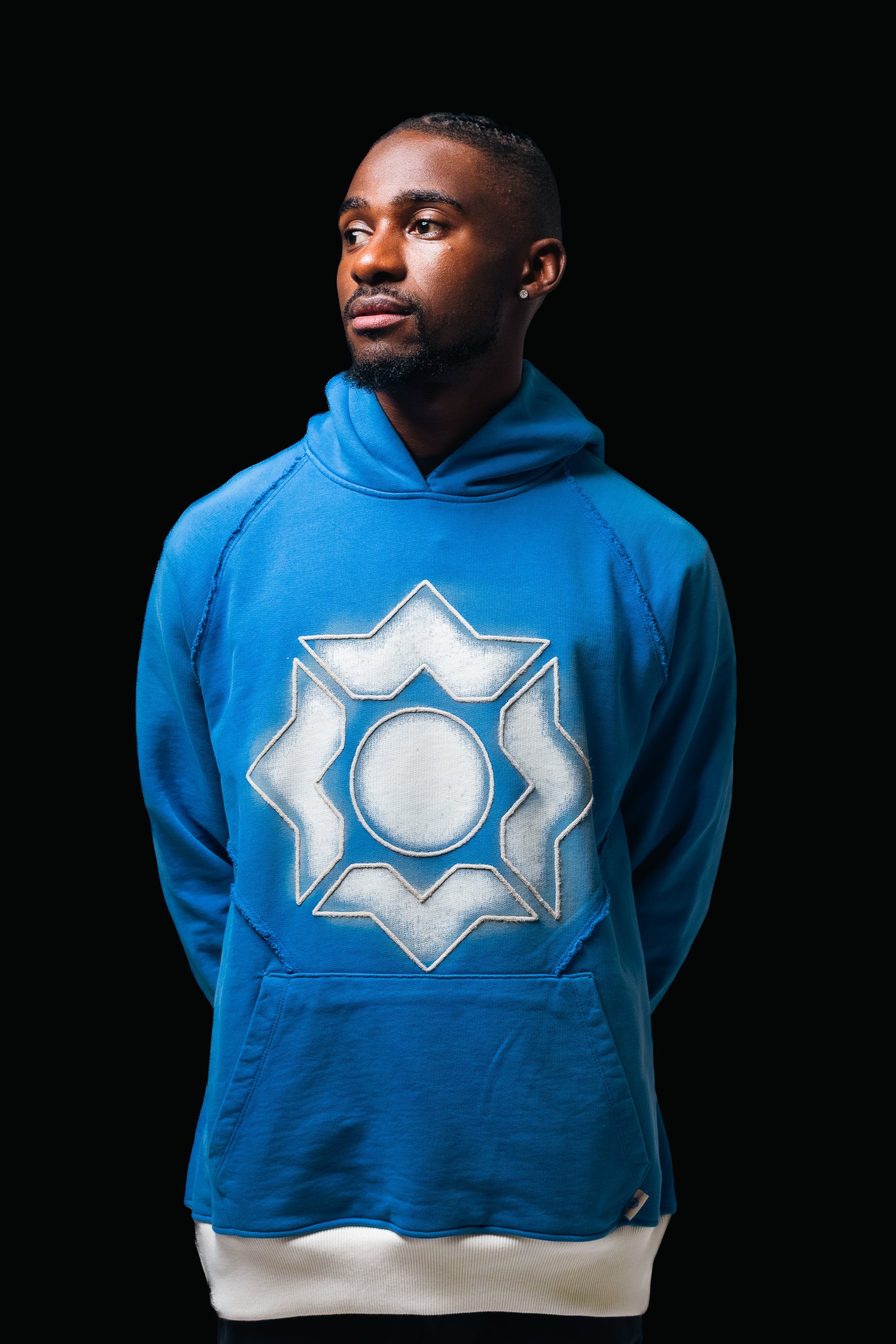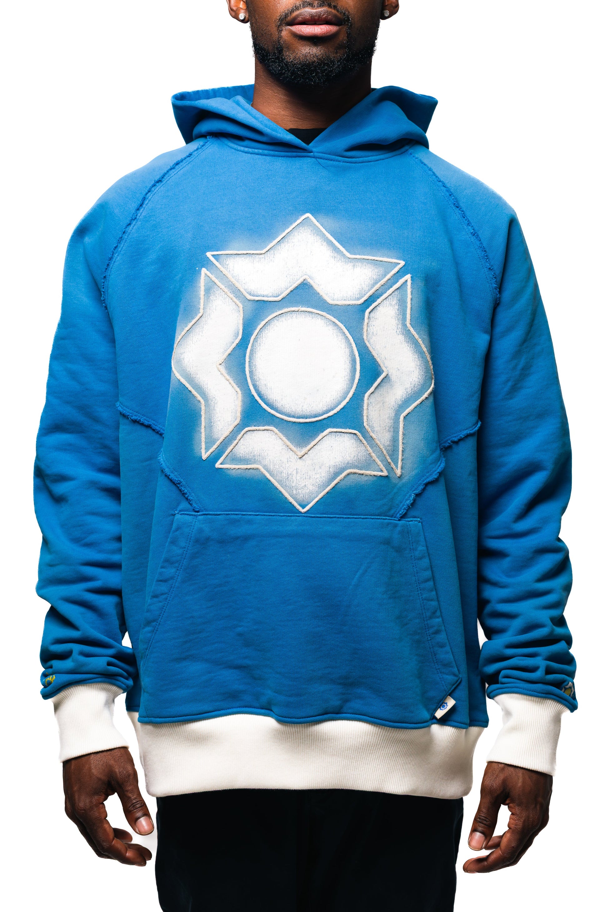 Sleeves and other sections of hoodie are slightly jet-sprayed to create distressed look. This design features starburst panel cuts and outward stitching with front-facing, jet-sprayed, Voxel™ signature star and embroidered outline.