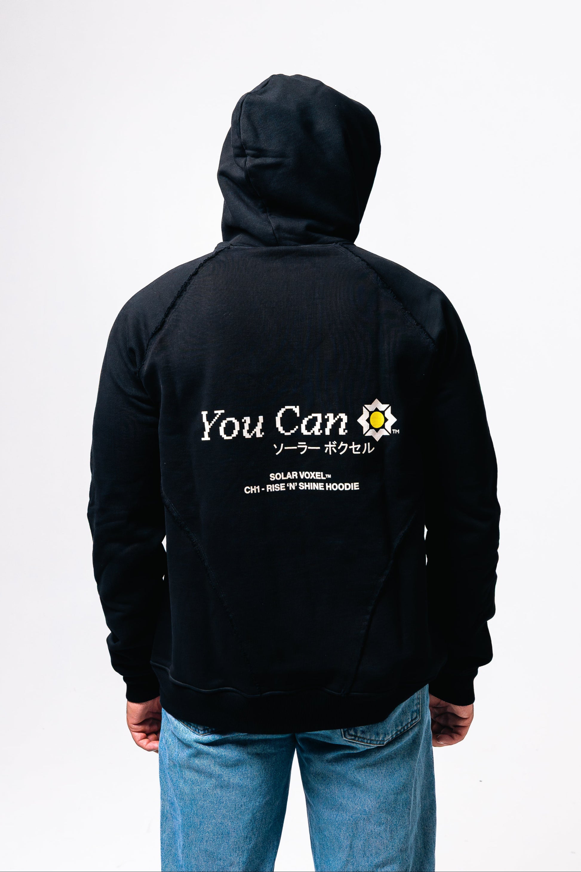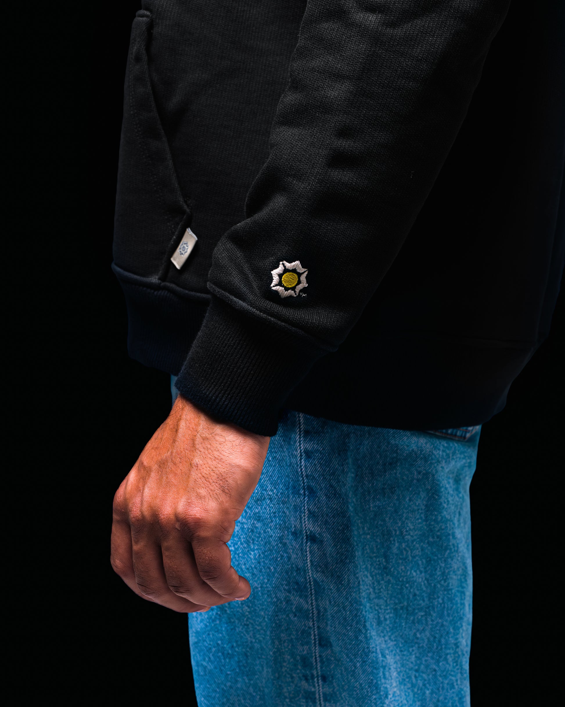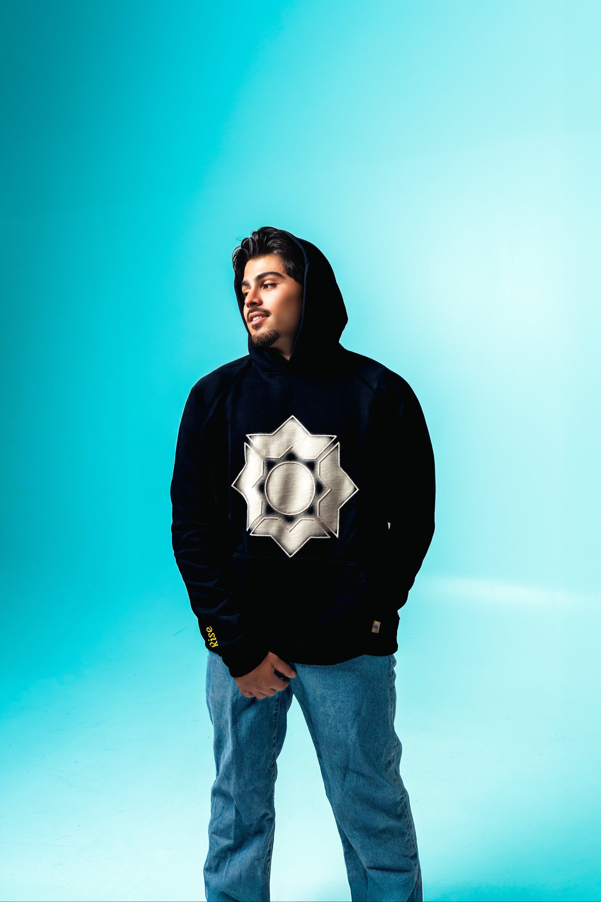 Sleeves and other sections of hoodie are slightly jet-sprayed to create distressed look. This design features starburst panel cuts and outward stitching with front-facing, jet-sprayed, Voxel™ signature star and embroidered outline.